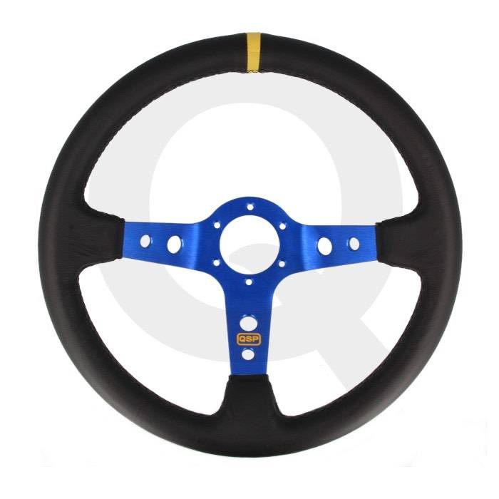 QSP Sportstuur leer, 3-spaak, verdiept 90mm, Spaak= blauw